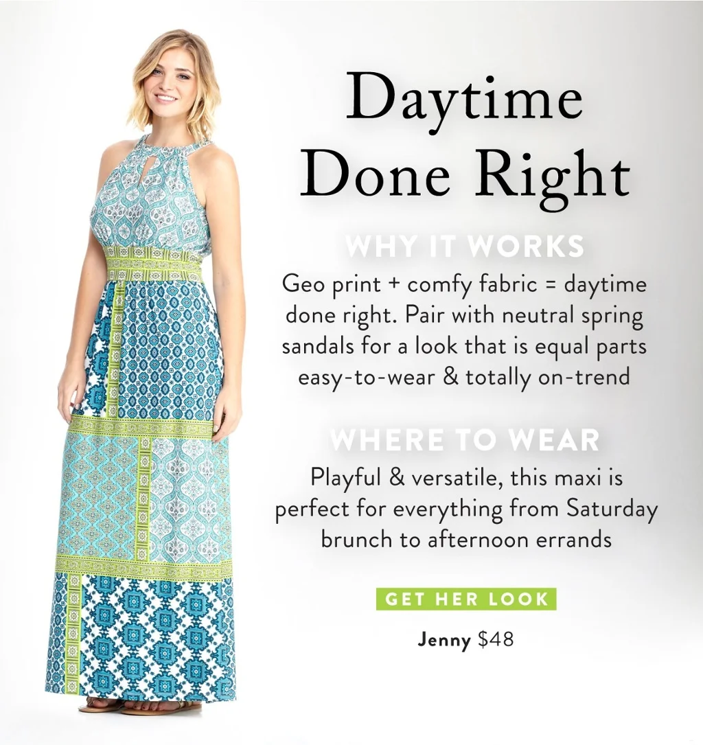 It's that time again! Get ready for a seriously exciting installment of Luxe for Less, starring our easiest $48 maxis! (We thought that might make you smile.) We know how much you love maxis -- We. Do. Too. Seriously, what's not to love? Style, comfort and versatility? Yes please! That's why today we're showing you exactly how to rock maxis from day to night (and everything in between). All you need is a few easy tricks to take your look from "Daytime Done Right" to "No-Stress Nightlife." So what are you waiting for? Better get moving...We hear you're one busy lady!